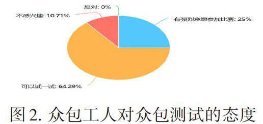 为了深入研究协作众包测试机制对众包工人的影响,我们在测试任务完成后对众包工人进行了一次匿名在线问卷调查以了解工人的个人真实想法,并结合众包工人的测试结果进行分析。我们发放了50份调查问卷,最后收到了38份调查反馈,并对其进行了一定的筛选,删除无效报告(如所有选项均相同),最后只留下28份有效调查报告。