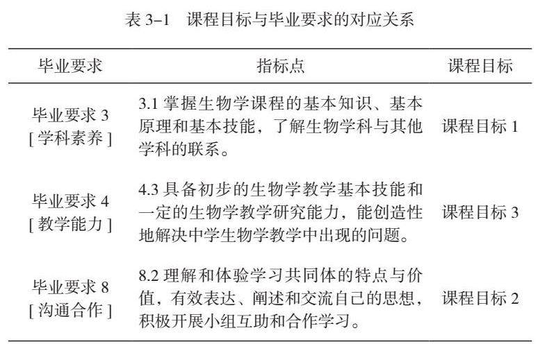 细胞生物学实验的课程目标与毕业要求中的三项关系较密切,如表3-1所示。