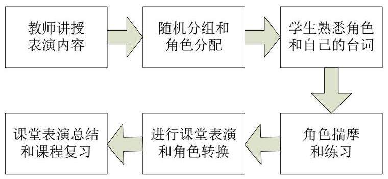 (2)小学英语课堂表演的具体实施步骤如下图2所示: