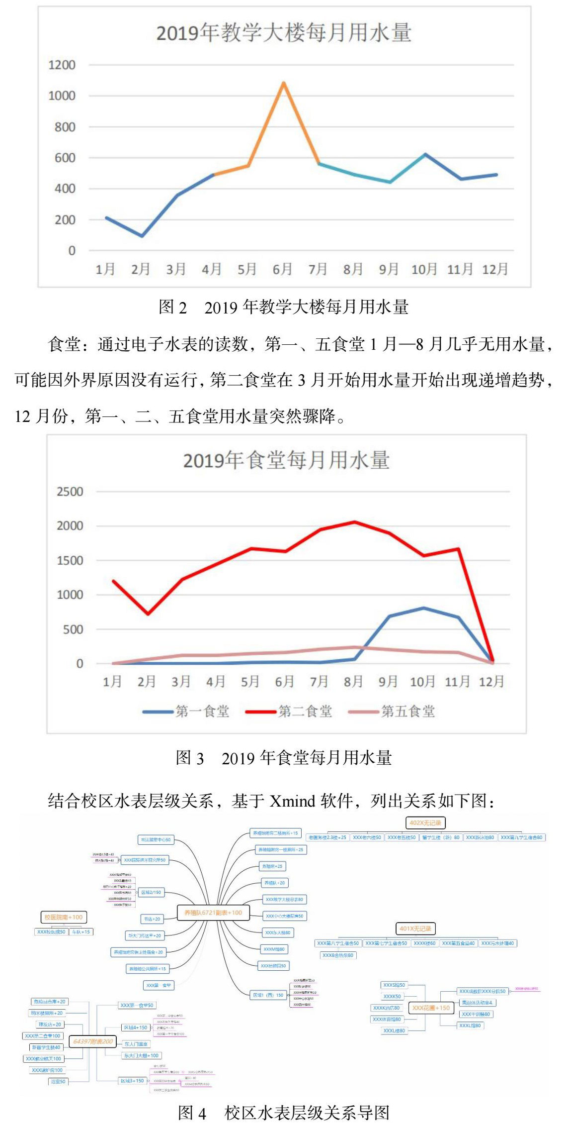 摘要:本文采用Xmind软件、基于假设检验统计分析方法,根据校园智能水表的实时数据,统计、分析各个水表数据的变化规律,并给出校园内不同功能区(宿舍、教学大楼、食堂等)的用水特征,从水表层级关系选择适合的数学模型,建立关系模型以及相关的数据分析,提出合理化建议,以达到提高校园服务和管理水平目的。