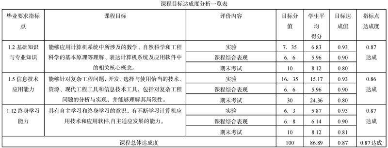 1. 课程目标1、2、3达成度评价均大于0.65,故评价结果为:达成;