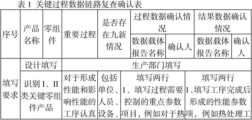 3、围绕梳理出来的重要过程清单,生产单位从“九新”、“工艺数据”、“指标验证”三个维度进行文件、数据、载体和操作人员的复查确认,完成形式详见表1;