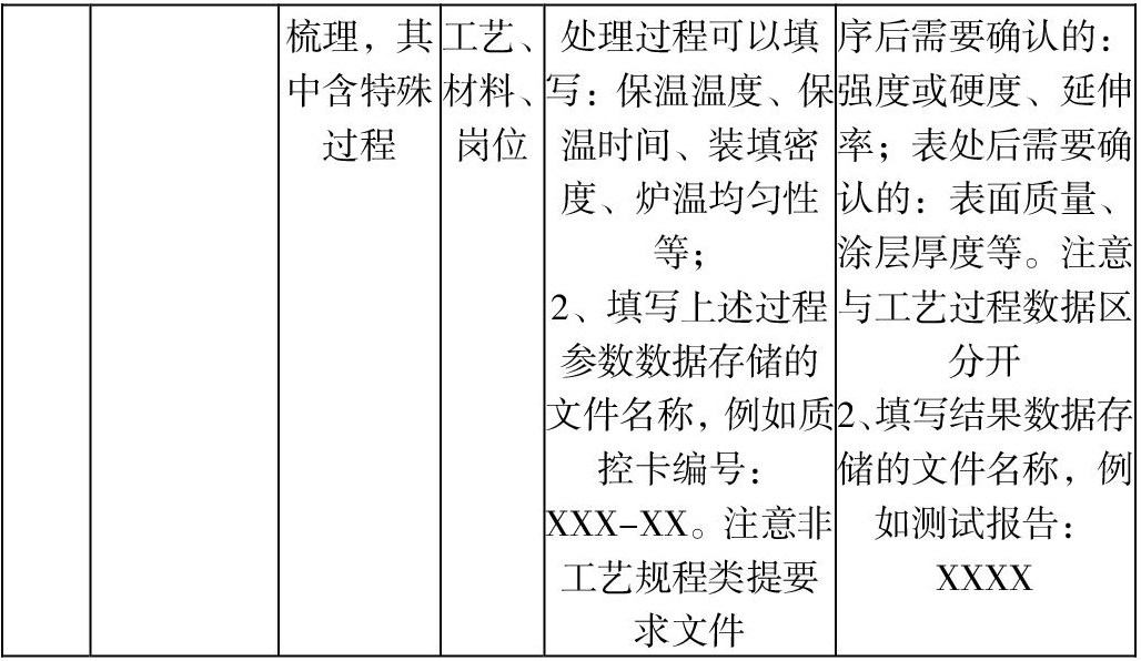 2、由生产单位围绕识别出的关键零组件,从原材料到出厂交付全过程的工艺流程中,识别出重要过程,包括形成性能的工序过程(如铸、锻、焊、热等)和影响性能的工序过程(如表处、除氢、去应力过程等),此项工作完成后,设计单位和生产单位共同确认,形成重要过程清单;