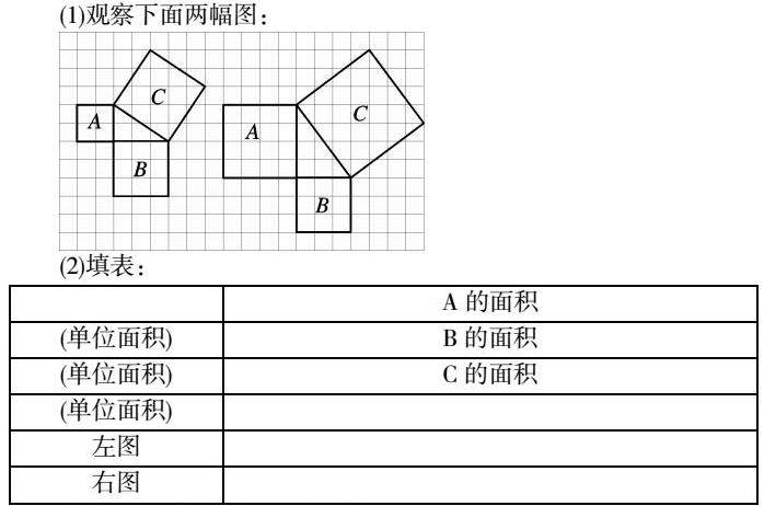 学生通过分析数据,归纳出:以直角三角形两直角边为边长的小正方形的面积的和,等于以斜边为边长的正方形的面积.