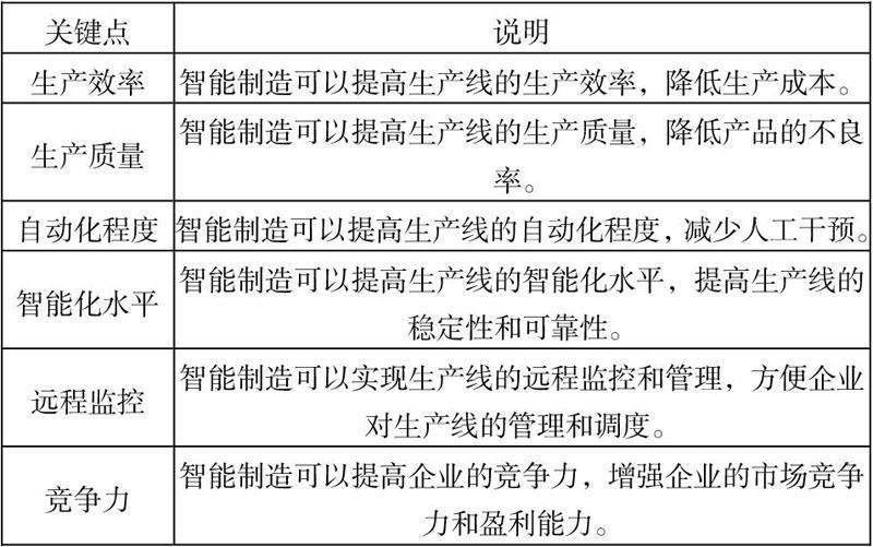 以下是一个简单的表格,用于说明基于智能制造的汽车座椅调角器生产线设计与实现的一些关键点。