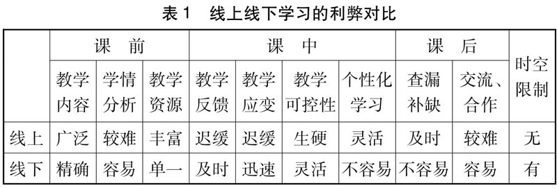 线上教学也不是毫无弊端,在实际操作中存在较多的局限性,如教学过程分散难以进行监督,课堂完成率难以得到保证;教学资源的筛选和使用需要技巧,知识内容的广度和深度不容易达到标准等,为了更清晰地对比线上线下学习的利与弊,我整理了“表1 线上线下学习的利弊对比”,参照线上线下学习的利弊对比探索线上线下教育融合的实施方法。