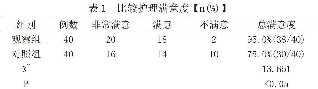 2.1对比护理满意度:观察组高于对照组(P<0.05),见表1。