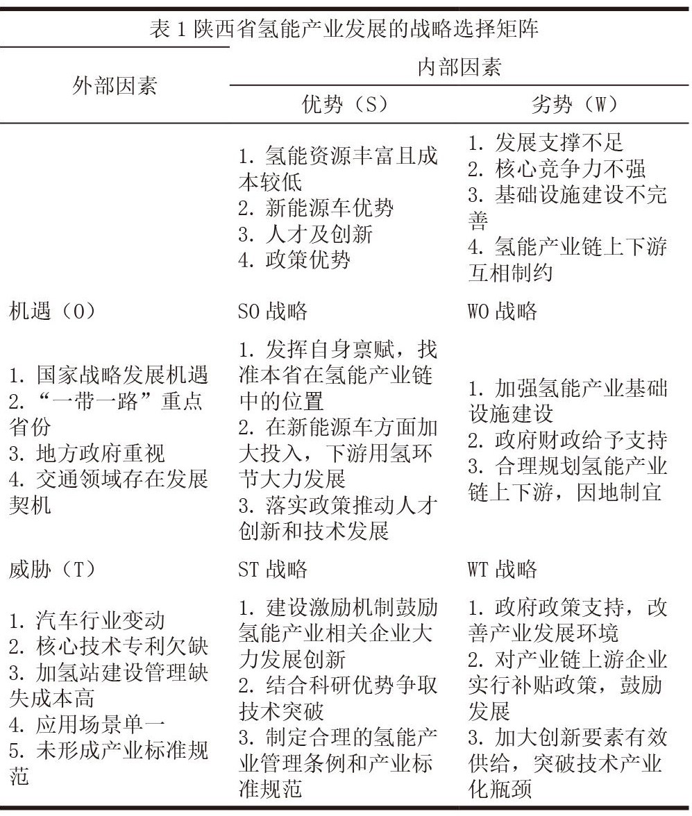 通过对陕西省氢能发展进行SWOT矩阵分析,将其内外部因素进行对比和匹配,构建了SO增强型战略、WO扭转型战略、ST规避型战略和WT防御型战略4种战略定位,全方位推进陕西省氢能产业的发展(表1)。[1]