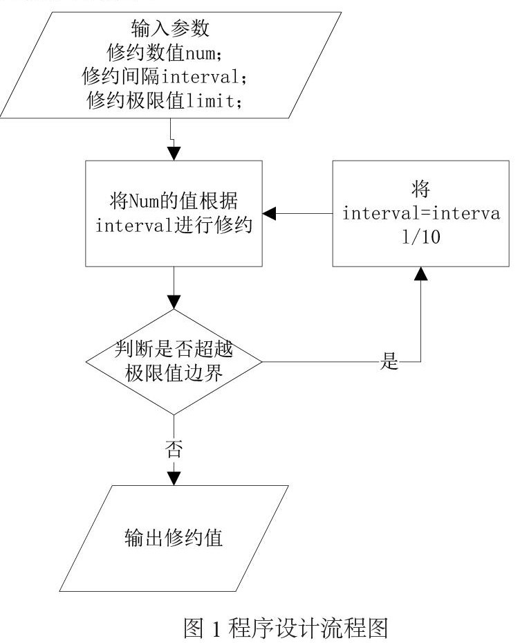 修约数值与极限值的判断规则为:在不越过极限值的情况下进行最大程度上的修约计算,以保证其修约数的判断和全数判断保持一致性。对于采用常规修约方式进行修约后会越过极限值的修约,本算法会提高一位修约精度,如还是超出极限值,则继续提高,直至保留全数,算法如图1所示。