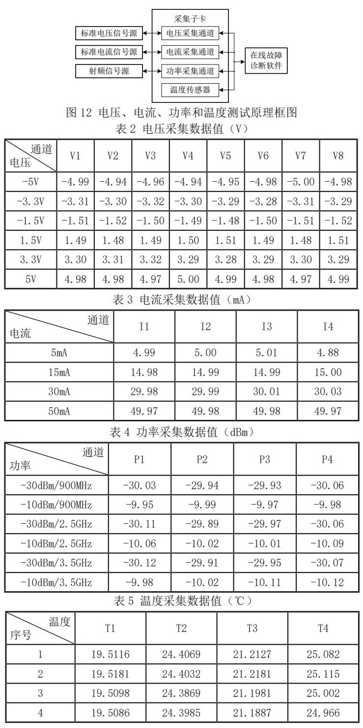 电压、电流、射频功率和温度测试原理框图如图12所示,标准信号源产生测试信号,由采集子卡对信号进行测试。