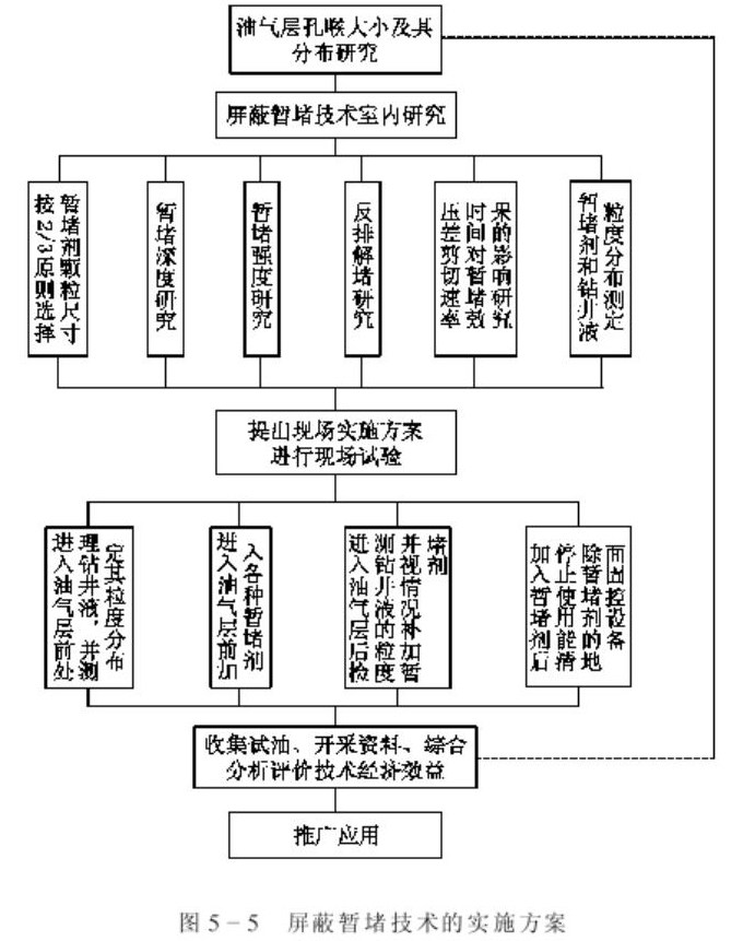 (4) 添加可变形颗粒,如磺化沥青、氧化沥青、石蜡、树脂等,用量一般为1%2%,粒径与粒径相对应法院裁定:med颗粒的de露点必须符合:油田温度。是 啊。临时关闭的具体实施方案见图5-5:技术。图。《5-5-5适用于钻井的临时连接技术保护实施方案》已在全国3000多个井区得到广泛应用,石油产量总体上已经改进了。用该技术要求单井投资仅需增加1万至5万元,但油井投产后不久即可从增加的原油中回收原油,近年来,屏蔽技术已从常规砂岩油藏扩展到特殊油藏。