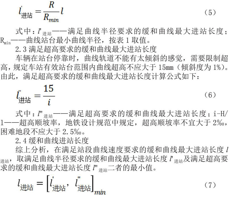 因此,缓和曲线进入有效站台,不仅要考虑有效站台范围内线路曲线半径大小,还需要考虑曲线超高限速的影响。本文结合有效站台范围内内最小曲线半径及最大超高,基于满足站端曲线运行速度的基础上,给出了缓和曲线最大进站长度计算公式,对线路精细化设计起到指导作用。
