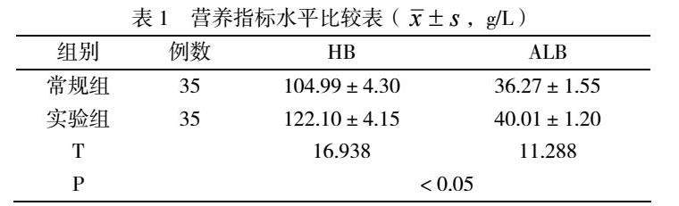 表1中,实验组的营养指标水平更高(P<0.05)。