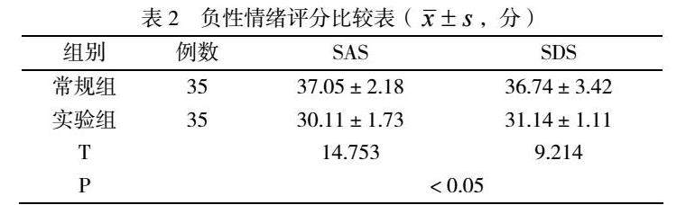 表2中,实验组的负性情绪评分更低(P<0.05)。