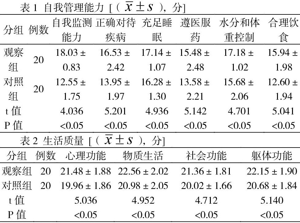 ①自我管理能力[1]:利用自我管理量表评价,各条目最高20分,分数越高表示自我管理能力越强。