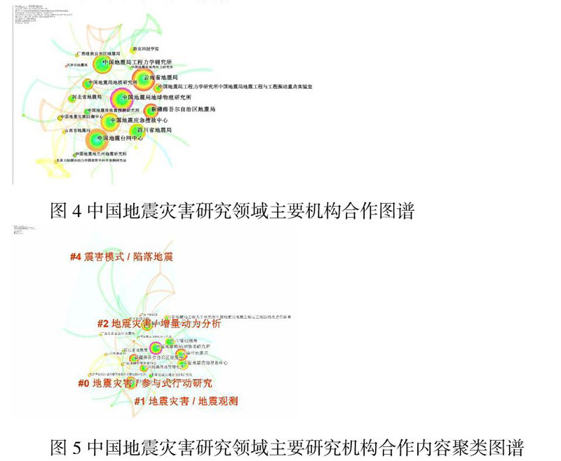 (3)中国地震局地球物理研究所、中国地震局工程力学研究所、中国地震应急搜救中心、云南省地震局、新疆地震局、四川地震局形成了研究所为主,地震局相关联的地震灾害研究领域的中心机构,各相关研究方向内容合作还需进一步加强。