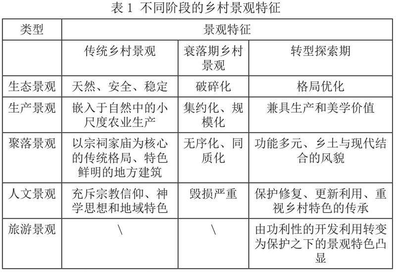 乡村建设以来,随着可持续思想和生态理念逐渐深入人心,景观建设进入转型的阶段。生态被放在首位,其次是生产,清洁节能、循环利用是乡村农业生产的关键词,另外乡村产业更加多元化,与旅游业结合愈加紧密。“美丽乡村”和“乡村振兴战略”都强调了旅游对乡村现代化转型的重要作用。转型探索期的乡村景观特点:(1)自然生态景观处于恢复和保护中,提倡优化自然生态格局并挖掘其旅游价值,乡村生态景观由神秘转向开放。(2)乡村生产景观的类型明显增多,由单一的耕地景观转变为农业采摘园、观光园等兼具生产和美学价值的景观。(3)对于乡村聚落景观,建成空间由平面拓展向垂直空间转变,呈现“居住+”的复合化利用模式[12],聚落景观逐渐形成乡土与现代结合的风貌。(4)传统的人文风俗发生巨变,以往敬天地敬鬼神转变为以历史人物、氏族家风为文化继承的核心[13],传统的节事活动更加日常化。(5)乡村旅游景观始于风景和人文资源丰富的城市周边村落[14],在商业利益的驱动下,其早期建设是具有破坏性的和功利的。后期基于生态优先的原则,挖掘乡村景观的美学、文化、教育和娱乐价值,通过建立精品农家乐、观光农业、旅游区和度假区等刺激乡村经济发展。
