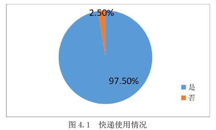 在对大学生的调查统计中,有97.5%的人有使用过快递的经历,仅仅只有2.5%的人表示从未使用过快递,从调查数据可以看出,快递逐渐成为当代大学生的购物主流。