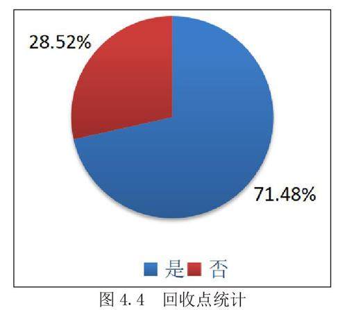 从调查结果看出,当我们平时拿快递时,71.48%的地点设有快递包装纸盒的回收点或回收桶,只有28.52%的地点对于快递的包装回收未采取积极的措施,有待进一步加强管理。同时我们了解到虽然一些学校会设置一些回收点,但空间小,无法满足多人使用,效果无法达到最优化,以至于很多学生未能充分利用回收点。