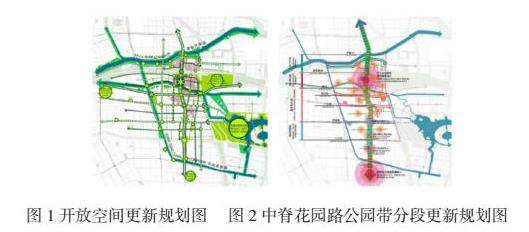 开放空间的框架性更新策略与地域协同模式同频,以城市级公共空间廊道为主干,结合点-线-面元素的全局布局梳理,优化基地社区与新老城市中心空间层面的联动。项目基地中脊的花园路公园带是城市标志性的绿色空间与商业中轴线的北延,下有地铁线路加持、片区内三站联动。未来更新以延续老城中心商业活力与风貌为主旨,重视街道界面功能、形象及空间体验的提升。通过对分段现状调研及潜力评估,结合片区衔接与抑扬等需求,因地制宜提出各段落的更新主题与功能风貌的提升导向。