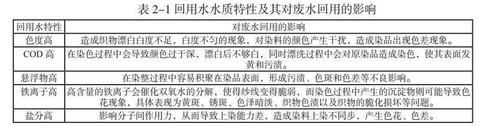 回用水水质特性及其对废水回用的影响如下表2-1所示。
