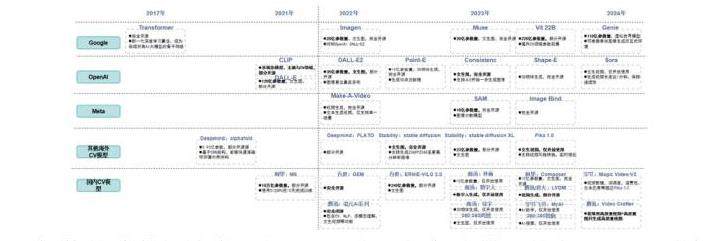 随着技术的不断进步,这一领域在2021年迎来了一个重要的里程碑。OpenAI发布了DALL-E模型,标志着图像生成类模型的爆发。随后,谷歌的lmagen、OpenAI的DALL-E2以及Stability旗下的StableDiffusion等模型相继问世,这些模型在图像生成的质量和多样性上取得了显著的进步。