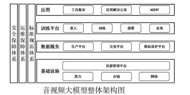 音视频大模型整体架构应在重塑音视频行业创意、生产、传播与消费的全流程,通过云网算与大模型的基础设施,用人工智能(AI)赋能音视频行业,实现内容生产从小作坊向工业化、数字化与智能化的转型升级,推动AI赋能的音视频产业特色。