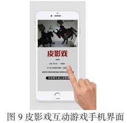 车溪风景区是楚文化的发祥之地,以物质、精神和社会民俗为三个主要的文化表达方向。其中,收藏超万件的土家旧物的农家博物馆给游客提供了了解民俗文化的途径,如农耕劳作器具“中华第一碾”。但里面所陈列的器件都只有些简单的名称标识,具体操作、用途等却没有详细的介绍。车溪景区内有不同的土家民俗文化的表达,如土法造纸术、吊脚楼建造术、三峡皮影戏等等,借助数字化技术AR交互,增加小游戏和互动的设置(图9)。游客除了观看非物质文化遗产皮影艺人的皮影戏表演之外,也可自己在移动终端上体验一次皮影戏的文化性和趣味感,仿佛自己在屏幕后真实操作。