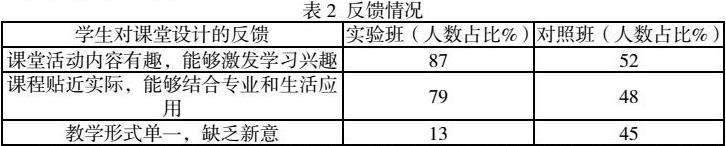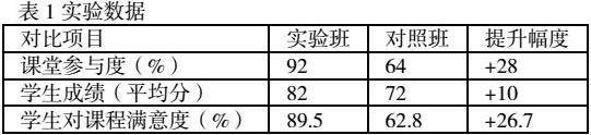 3.学习效果:实验班学生在课程考试中的平均成绩为82分,而对照班为72分,尤其是在主观题(如案例分析题)中表现出更强的思维能力和实践能力。
