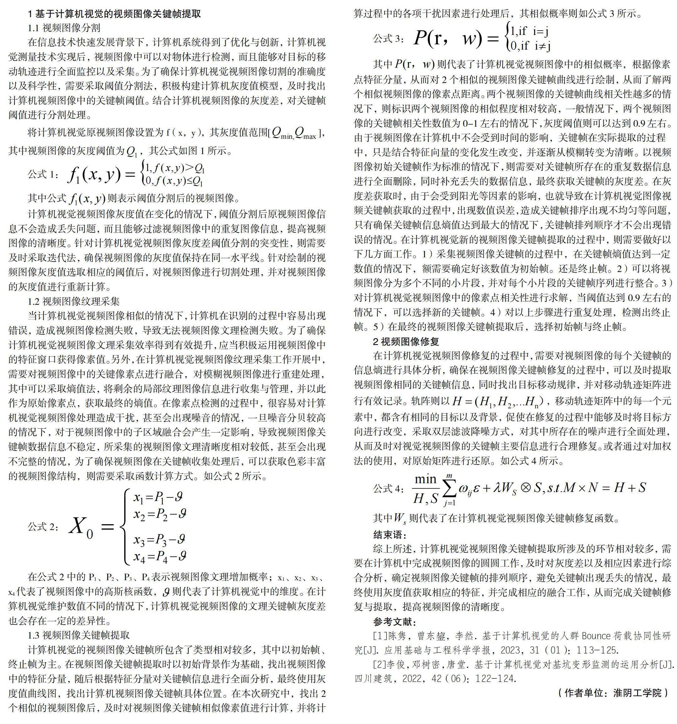 关键词:计算机视觉;视频图像;关键帧;提取方式;修复方法