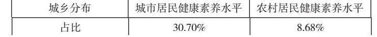 从城乡分布来看,城市居民健康素养水平(30.70% ) 高于农村居民(22.02% )。
