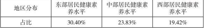 从地区分布来看,东、中、西部地区居民健康素养水平分别为30.40%、23.83%和19.42%。