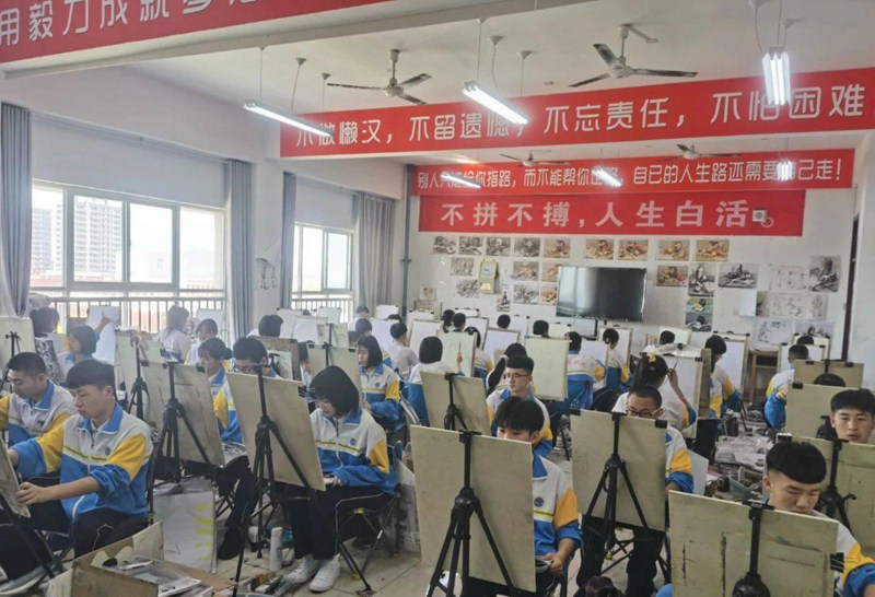 目前,学校在学生艺术特长培养上形成规模,艺术教育走在了全市、全县走在了前列,每年都有相当为高校输送了大量艺术人才。2011至2020年,美术专业联考合格率在94%以上,美术、音乐、书法专业校考合格率达到98%,录取率都在60%以上。事实上,学校发展艺术教育取得了丰硕的成果。1999以来先后有3000余名学生靠艺术升入大学深造,向中国美院、西安美院、湖北美院、西安音乐学院等艺术院校,同济大学、哈工大、山大等“985”、“211”工程高校输送了200多名优质生源。近几年更是升学人数逐年攀升。很多专业升学率达到80%以上。2020年我校专业生过关率、双过线率、录取率均位居全县第一位,401人升入高等院校,其中不乏985、211院校,应该说,升学前景是非常好的。目前,我们开设美术、音乐、体育、健美操、舞蹈、乒乓球、书法、空乘、影视编导、文艺编导、戏剧编导、广播电视编导、影视传播等艺术专业。通过实施因材施教、分层教学、潜力挖掘,我们所开设的每一个专业,均能帮助绝大多数同学实现成才之梦。