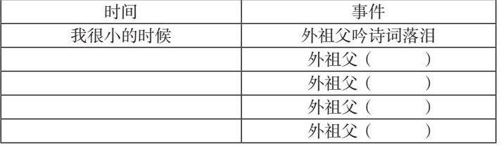 默读课文,思考:课文写了外祖父的哪几件事? 请大家边读边圈出表示时间的词语,并用横线划出关键词句,概括事件,填写研学案上的表格。
