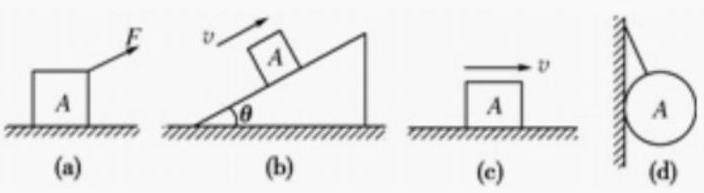 评价任务2:画出图中物体A的受力示意图:(1)接触面光滑,物体A静止;(2)物体A粗糙固定斜面上滑;(3)物体A沿粗糙水平面滑行;(4)接触面光滑,物体A静止。