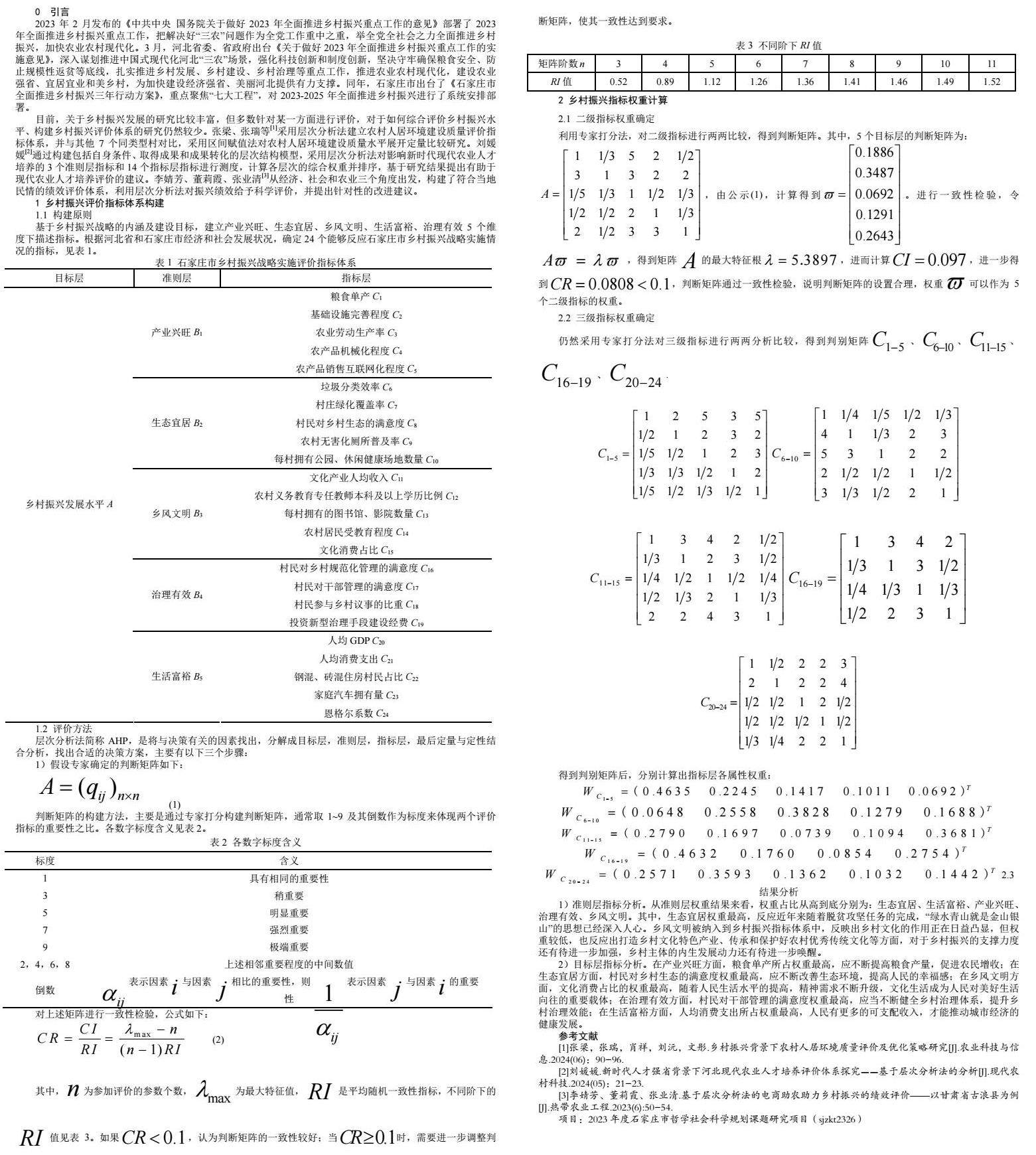 基于层次分析法的石家庄市乡村振兴战略实施评价研究