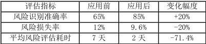应用大数据进行招投标风险评估后,该企业的投标风险损失率从12%降低至9.6%,降幅达20%。表1 展示了该企业应用大数据前后投标风险相关数据对比: