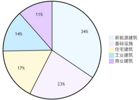 通过收集分析宏观经济数据、政策法规数据、行业统计数据、市场调研数据等多源数据,利用大数据分析技术和预测模型,可精准预测建筑市场发展趋势。以国家统计局、住建部相关数据为基础,结合市场调研数据,对某地区未来 5 年不同类型建筑项目市场需求进行预测(图 1), 新能源建筑项目市场需求增长率预计达 30%,基础设施项目增长率为20%,住宅建筑增长率为15%,工业建筑增长率为12%,商业建筑增长率为10%。