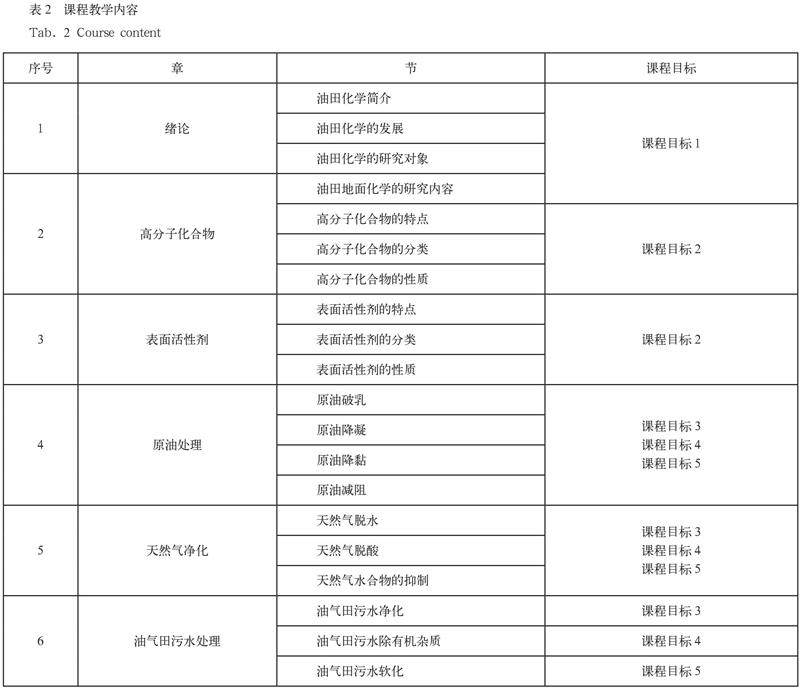 课程教学内容设置的主要原则是:将集输化学分为原油处理、天然气净化以及油气田污水处理三部分内容进行逐一介绍,同时增加高分子聚合物和表面活性剂相关的化学基础知识。课程内容详见表2。