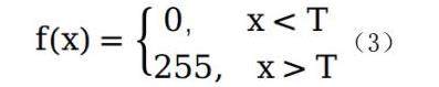 在公式3中,T代表制定的阈值,此变换函数为阶跃函数,在得到阈值点T以后,可实现图像转化,得到二值图像。