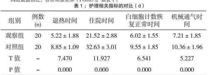 对照组实施常规护理,具体内容:护理人员需要加强患者各项生命体征变化的监测,并遵医嘱给予患者用药,维持其气道的通畅状态,并开展一系列对症处理,如皮肤护理、饮食干预和降温处理等。