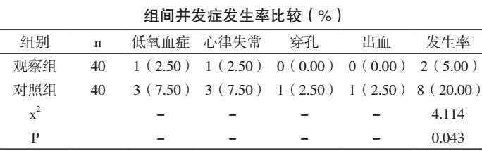 观察组较对照组的并发症发生率更低,差异具有统计学意义(P<0.05)。见下表。