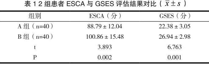 经护理,B组患者ESCA与GSES评估结果较A组患者更为理想(P<0.05),详见表1: