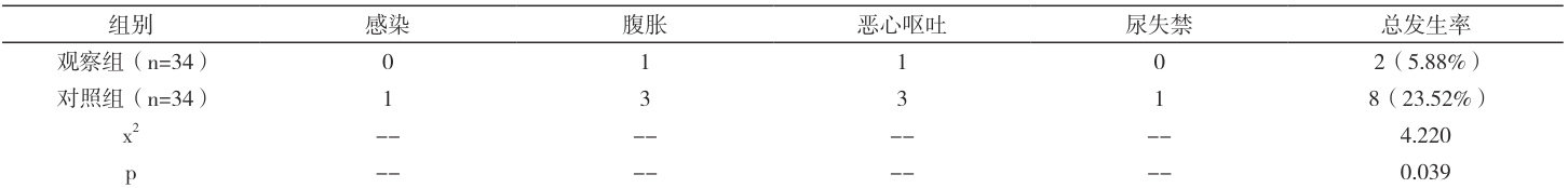 并发症发生情况:观察患者切除术后出现的感染、腹胀、恶心呕吐、尿失禁等并发症,并进行记录。