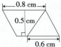 2. 如图,把一个平行四边形剪成一个三角形和一个梯形。如果平行四边形的高是 0.5cm, 那么三角形的面积是( )cm2, 梯形的面积是( )cm2.