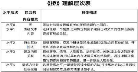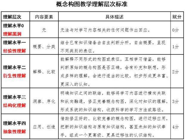 为了科学评价,检测概念构图教学效果,课题组决定用理解层次表来推进教学,并以此为观察量表来进行课堂实践: