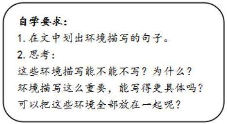 学生的预习构图,在故事情节上把握得比较好,但是对于环境描写关注得不多。于是,课题组确定了下面的教学流程并展开教学实践。通过多次试教、磨课、改进、完善,最终比较完美地呈现。