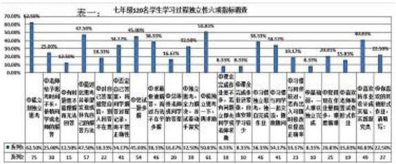 为了解学生学习过程独立性六项指标调查问卷,对学校七年级120名学生进调查,具体结果如表一: