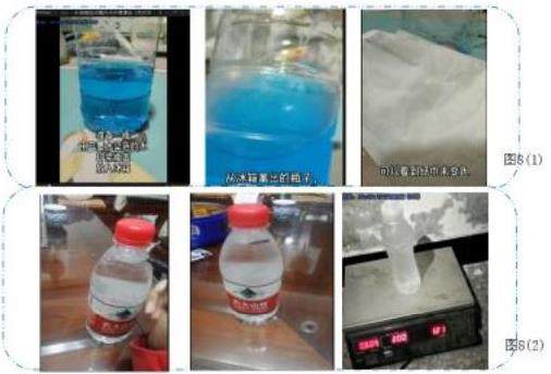 《冷冻过的矿泉水瓶外壁水哪里来?》项目任务视频。学生对刚从冰箱里拿出的矿泉水瓶,放在外面一会儿,外壁出现水珠,其水珠来源,学生存在困惑。学生也主动思考并尝试实践分析,如图8(1)、(2)。
