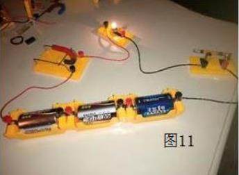 学生利用实验包进行“磁场对通电导体的作用”实验时(图11),经常发现导体不能运动,会自觉多层次的改进实验或求教老师,从原理上入手:增大磁场力或减小摩擦力,再将各实验器材进行变换改进,大大提高师生的实验操作能力。